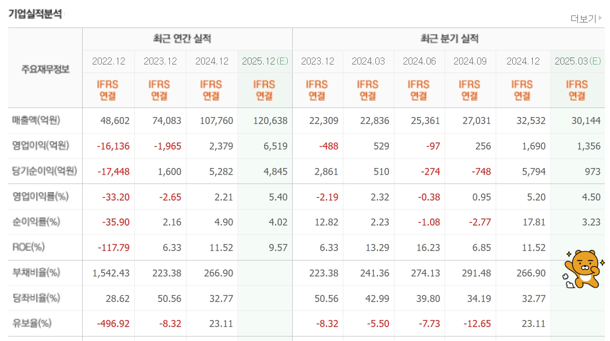 특히 2024년 4분기 단독으로 1,690억 원의 영업이익을 기록한 점은 가시적인 실적 회복을 입증합니다.